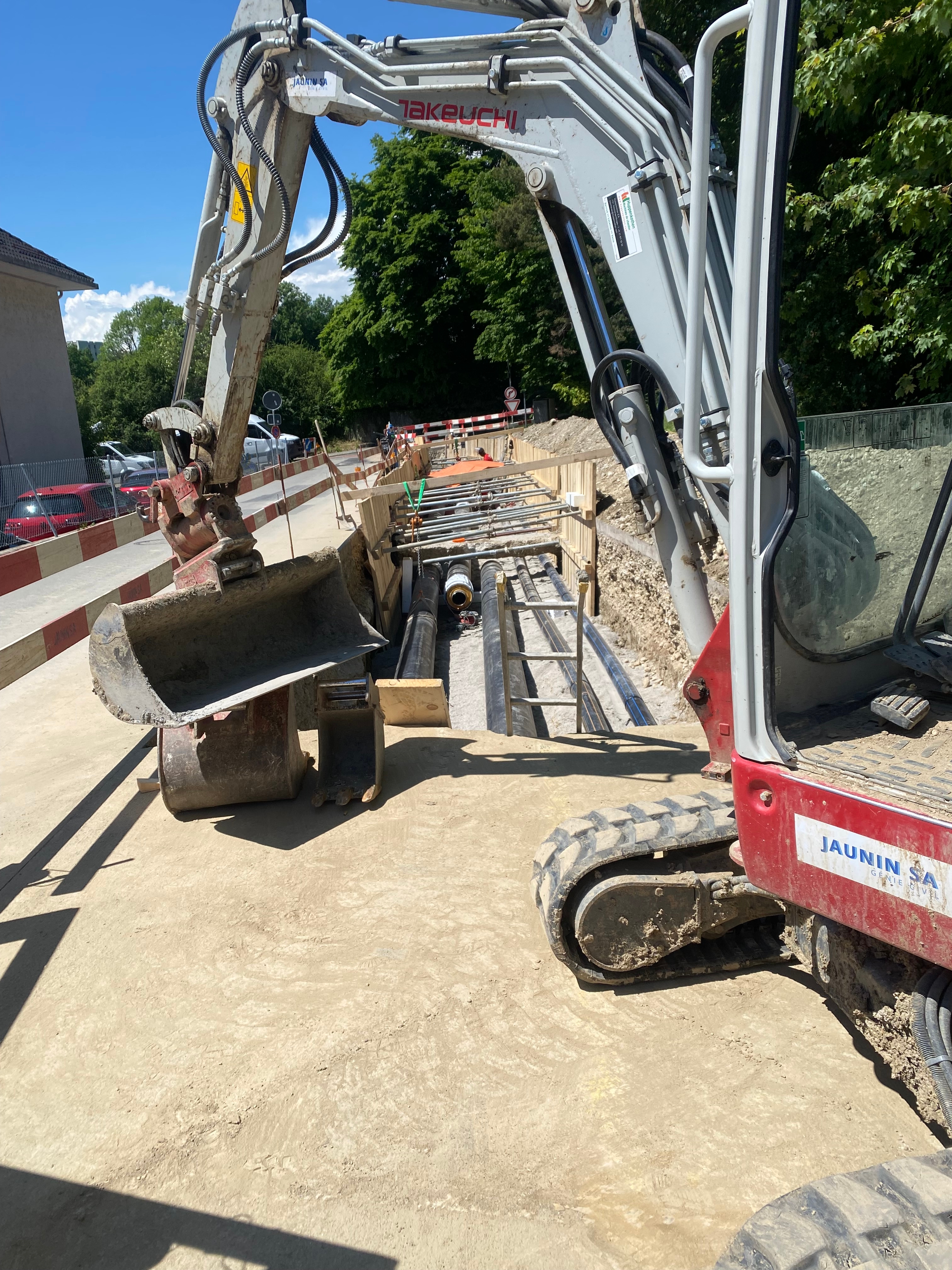 Travaux de génie civil pour le raccordement des eaux claires, eaux usées, gaz, chauffage à distance